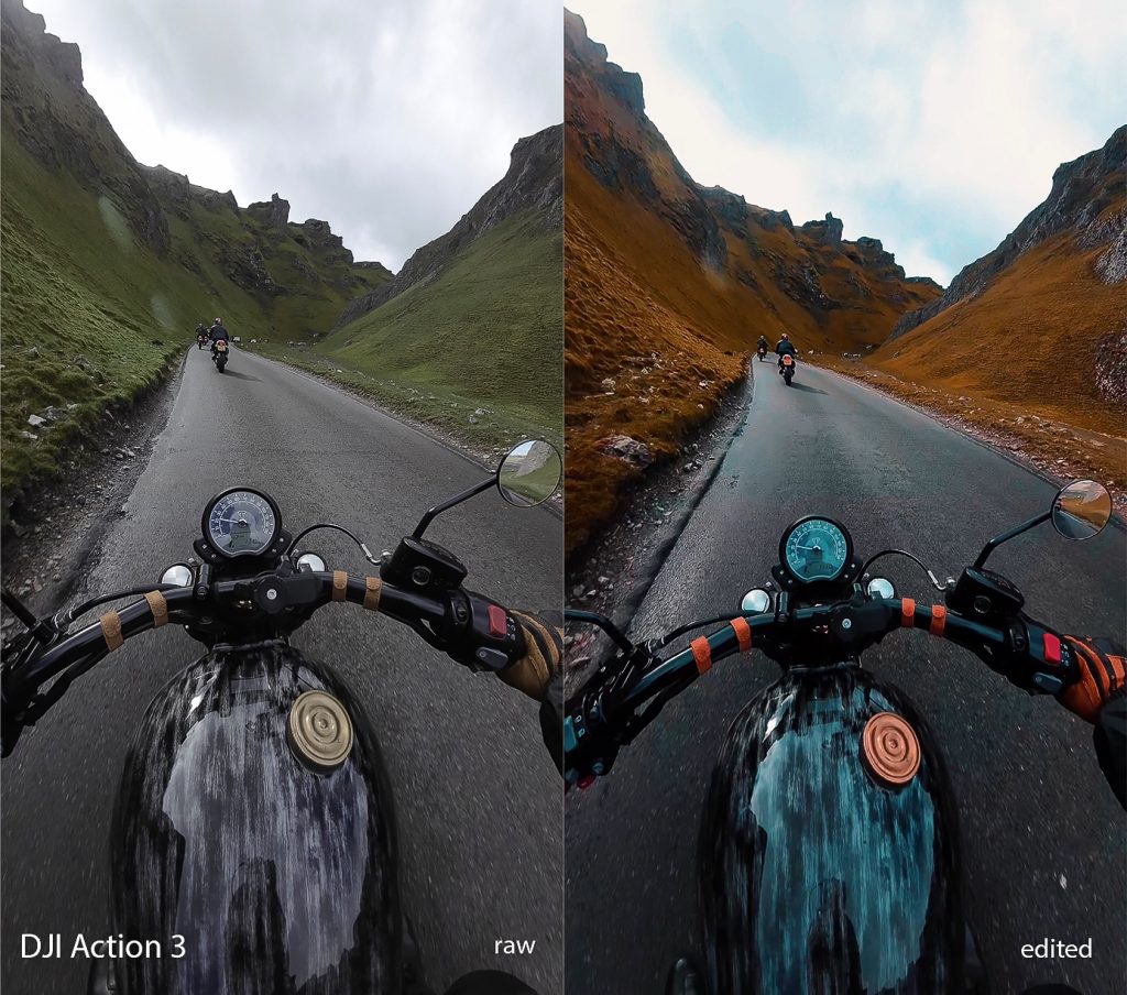 Looking at the specifications between these two cameras and the external chassis, you would be forgiven for thinking there is not much difference. Both cameras are the same dimensions, 70.5×44.2×32.8mm and weighing 145g, meaning any size specific cases you might have for the Action 3, will fit the Action 4. There is a change in colour of the shutter/record button, orange on the Action 3 and red on Action 4. I found the button on the Action 4 more sensitive and a lot easier to press which is a huge bonus when you are riding a motorcycle, wearing gloves, doing stop/start recording as you ride. The similarities continue in the front and rear screens, 1.4 inch front and 2.25 inch rear. Both cameras shoot 4K/60fps in 4:3 and 4K/120fps in 16:9, both have rocksteady image stabilisation, and both have the same battery capacity and much more. So, what IS different?